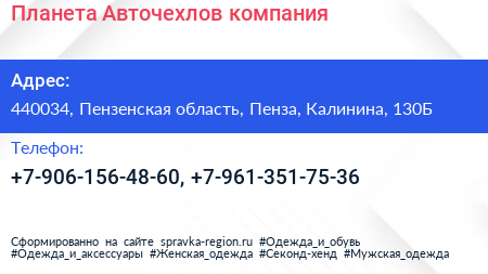 Планета Авточехлов, компания по адресу 440034, Пензенская область, Пенза, Калинина, 130Б в дальнейшем Организация, размещена в следующих категориях: