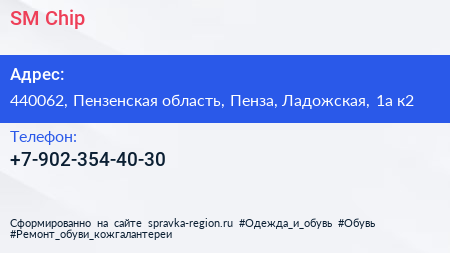 SM Chip по адресу 440062, Пензенская область, Пенза, Ладожская, 1а к2 в дальнейшем Организация, размещена в следующих категориях: