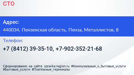 СТО по адресу 440034, Пензенская область, Пенза, Металлистов, 8 в дальнейшем Организация, размещена в следующих категориях: