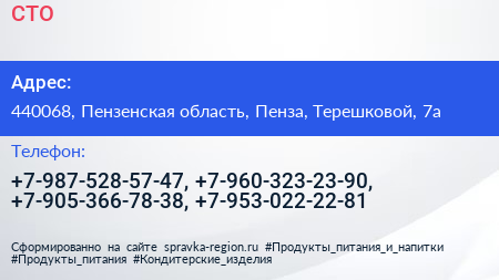 СТО по адресу 440068, Пензенская область, Пенза, Терешковой, 7а в дальнейшем Организация, размещена в следующих категориях: