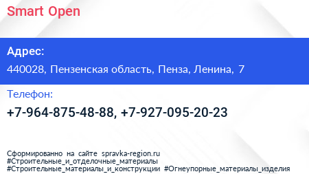Smart-Open по адресу 440028, Пензенская область, Пенза, Ленина, 7 в дальнейшем Организация, размещена в следующих категориях: