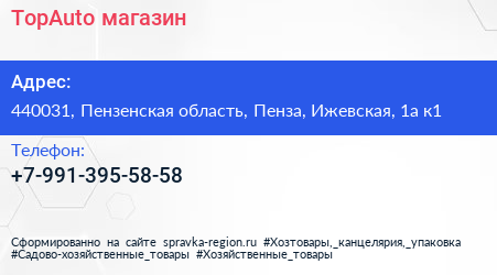 TopAuto, магазин по адресу 440031, Пензенская область, Пенза, Ижевская, 1а к1 в дальнейшем Организация, размещена в следующих категориях: