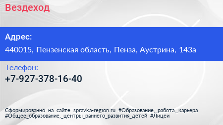 Вездеход по адресу 440015, Пензенская область, Пенза, Аустрина, 143а в дальнейшем Организация, размещена в следующих категориях: