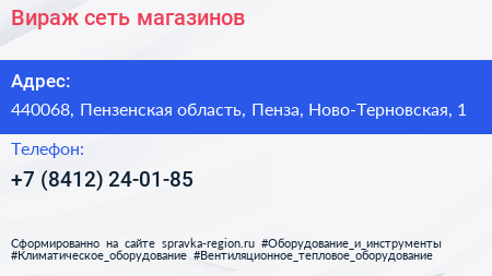 Вираж, сеть магазинов по адресу 440068, Пензенская область, Пенза, Ново-Терновская, 1 в дальнейшем Организация, размещена в следующих категориях: