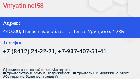 Vmyatin-net58 по адресу 440000, Пензенская область, Пенза, Урицкого, 123Б в дальнейшем Организация, размещена в следующих категориях: