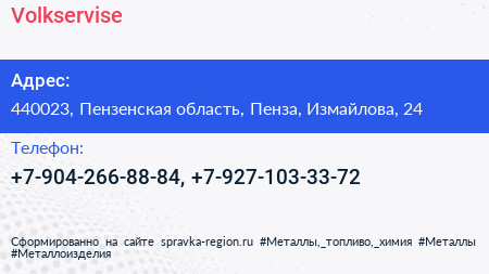 Volkservise по адресу 440023, Пензенская область, Пенза, Измайлова, 24 в дальнейшем Организация, размещена в следующих категориях: