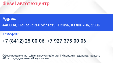 diesel, автотехцентр по адресу 440034, Пензенская область, Пенза, Калинина, 130Б в дальнейшем Организация, размещена в следующих категориях: