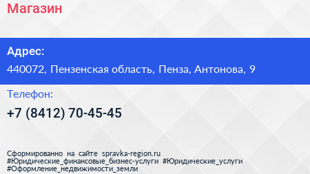 Магазин по адресу 440072, Пензенская область, Пенза, Антонова, 9 в дальнейшем Организация, размещена в следующих категориях: