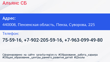 Альянс СБ по адресу 440008, Пензенская область, Пенза, Суворова, 225 в дальнейшем Организация, размещена в следующих категориях: