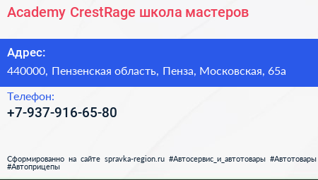 Academy CrestRage, школа мастеров по адресу 440000, Пензенская область, Пенза, Московская, 65а в дальнейшем Организация, размещена в следующих категориях: