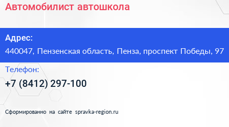 Автомобилист, автошкола по адресу 440047, Пензенская область, Пенза, проспект Победы, 97 в дальнейшем Организация, размещена в следующих категориях: