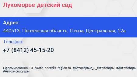 Лукоморье, детский сад по адресу 440513, Пензенская область, Пенза, Центральная, 12а в дальнейшем Организация, размещена в следующих категориях: