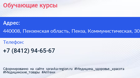 Обучающие курсы по адресу 440008, Пензенская область, Пенза, Коммунистическая, 30 в дальнейшем Организация, размещена в следующих категориях: