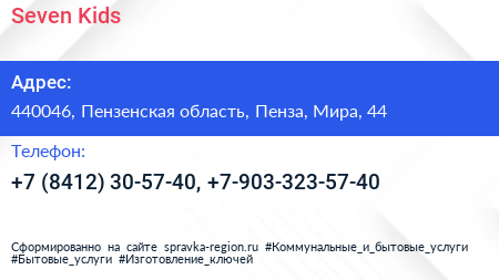 Seven Kids по адресу 440046, Пензенская область, Пенза, Мира, 44 в дальнейшем Организация, размещена в следующих категориях: