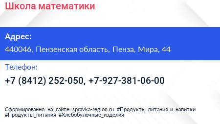 Школа математики по адресу 440046, Пензенская область, Пенза, Мира, 44 в дальнейшем Организация, размещена в следующих категориях: