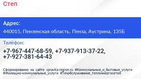 Степ+ по адресу 440015, Пензенская область, Пенза, Аустрина, 135Б в дальнейшем Организация, размещена в следующих категориях: