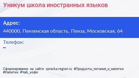 Уникум, школа иностранных языков по адресу 440000, Пензенская область, Пенза, Московская, 64 в дальнейшем Организация, размещена в следующих категориях: