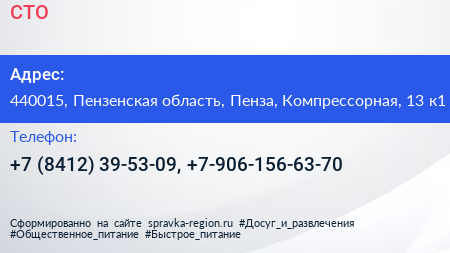 СТО по адресу 440015, Пензенская область, Пенза, Компрессорная, 13 к1 в дальнейшем Организация, размещена в следующих категориях: