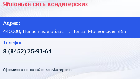 Яблонька, сеть кондитерских по адресу 440000, Пензенская область, Пенза, Московская, 65а в дальнейшем Организация, размещена в следующих категориях: