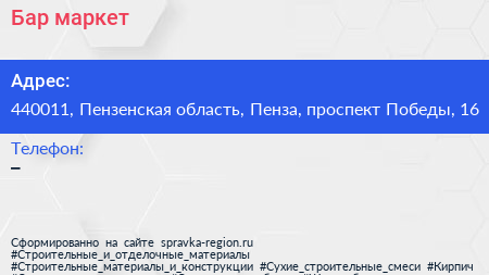Бар-маркет по адресу 440011, Пензенская область, Пенза, проспект Победы, 16 в дальнейшем Организация, размещена в следующих категориях: