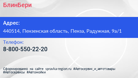 БлинБери по адресу 440514, Пензенская область, Пенза, Радужная, 9а/1 в дальнейшем Организация, размещена в следующих категориях: