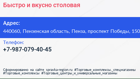 Быстро и вкусно, столовая по адресу 440060, Пензенская область, Пенза, проспект Победы, 150 в дальнейшем Организация, размещена в следующих категориях: