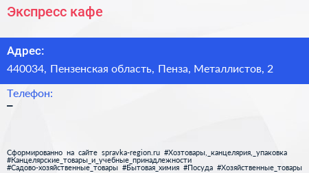 Экспресс, кафе по адресу 440034, Пензенская область, Пенза, Металлистов, 2 в дальнейшем Организация, размещена в следующих категориях: