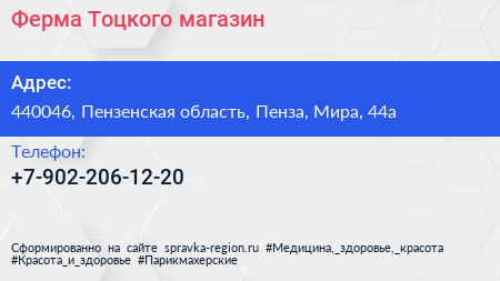 Ферма Тоцкого, магазин по адресу 440046, Пензенская область, Пенза, Мира, 44а в дальнейшем Организация, размещена в следующих категориях:
