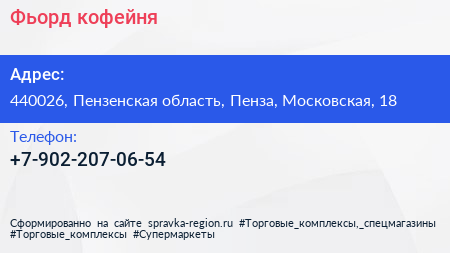 Фьорд, кофейня по адресу 440026, Пензенская область, Пенза, Московская, 18 в дальнейшем Организация, размещена в следующих категориях:
