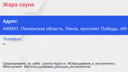 Жара, сауна по адресу 440047, Пензенская область, Пенза, проспект Победы, 69г в дальнейшем Организация, размещена в следующих категориях: