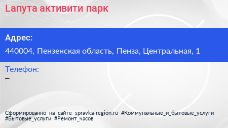 Lапута, активити-парк по адресу 440004, Пензенская область, Пенза, Центральная, 1 в дальнейшем Организация, размещена в следующих категориях: