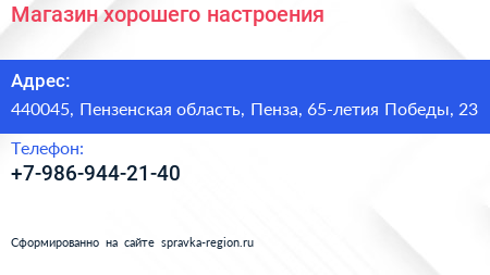 Магазин хорошего настроения по адресу 440045, Пензенская область, Пенза, 65-летия Победы, 23 в дальнейшем Организация, размещена в следующих категориях: