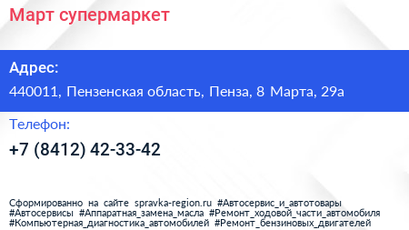 Март, супермаркет по адресу 440011, Пензенская область, Пенза, 8 Марта, 29а в дальнейшем Организация, размещена в следующих категориях: