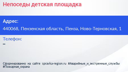 Непоседы, детская площадка по адресу 440068, Пензенская область, Пенза, Ново-Терновская, 1 в дальнейшем Организация, размещена в следующих категориях: