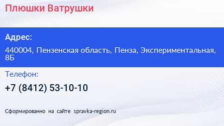 Плюшки Ватрушки по адресу 440004, Пензенская область, Пенза, Экспериментальная, 8Б в дальнейшем Организация, размещена в следующих категориях:
