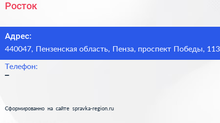 Росток по адресу 440047, Пензенская область, Пенза, проспект Победы, 113 в дальнейшем Организация, размещена в следующих категориях: