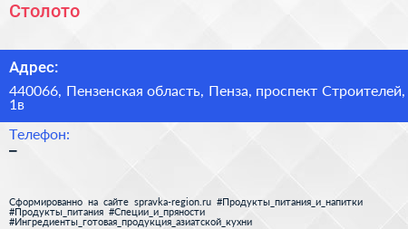 Столото по адресу 440066, Пензенская область, Пенза, проспект Строителей, 1в в дальнейшем Организация, размещена в следующих категориях: