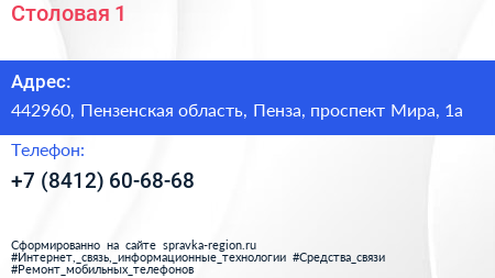 Столовая №1 по адресу 442960, Пензенская область, Пенза, проспект Мира, 1а в дальнейшем Организация, размещена в следующих категориях: