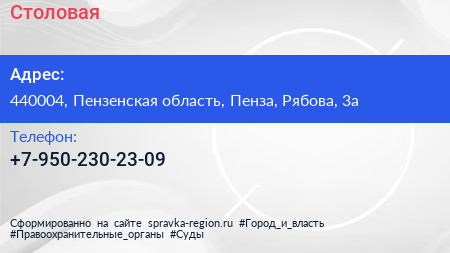 Столовая по адресу 440004, Пензенская область, Пенза, Рябова, 3а в дальнейшем Организация, размещена в следующих категориях: