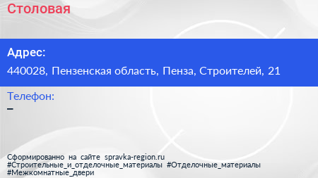 Столовая по адресу 440028, Пензенская область, Пенза, Строителей, 21 в дальнейшем Организация, размещена в следующих категориях: