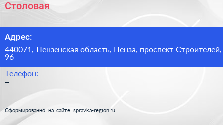 Столовая по адресу 440071, Пензенская область, Пенза, проспект Строителей, 96 в дальнейшем Организация, размещена в следующих категориях: