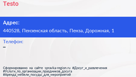 #Testo по адресу 440528, Пензенская область, Пенза, Дорожная, 1 в дальнейшем Организация, размещена в следующих категориях: