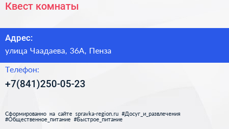 Квест-комнаты по адресу улица Чаадаева, 36А, Пенза в дальнейшем Организация, размещена в следующих категориях: