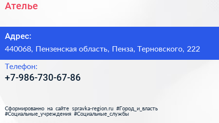 Ателье по адресу 440068, Пензенская область, Пенза, Терновского, 222 в дальнейшем Организация, размещена в следующих категориях: