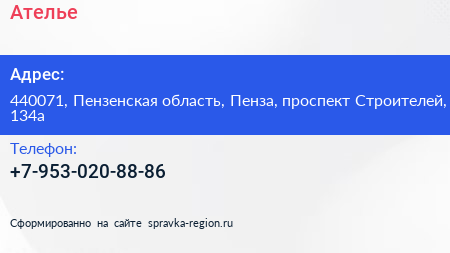 Ателье по адресу 440071, Пензенская область, Пенза, проспект Строителей, 134а в дальнейшем Организация, размещена в следующих категориях: