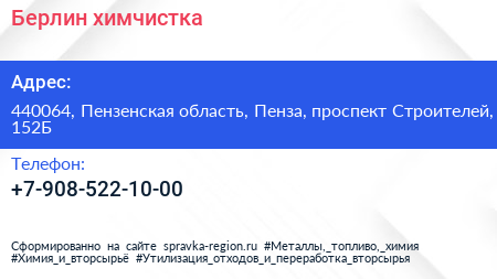 Берлин, химчистка по адресу 440064, Пензенская область, Пенза, проспект Строителей, 152Б в дальнейшем Организация, размещена в следующих категориях: