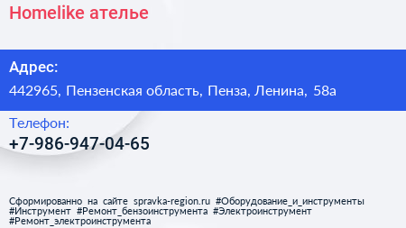 Homelike, ателье по адресу 442965, Пензенская область, Пенза, Ленина, 58а в дальнейшем Организация, размещена в следующих категориях: