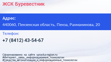ЖСК Буревестник по адресу 440060, Пензенская область, Пенза, Рахманинова, 20 в дальнейшем Организация, размещена в следующих категориях:
