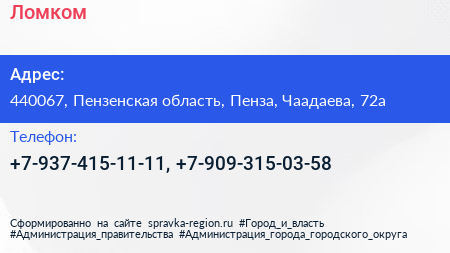 Ломком по адресу 440067, Пензенская область, Пенза, Чаадаева, 72а в дальнейшем Организация, размещена в следующих категориях: