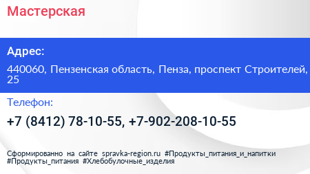 Мастерская по адресу 440060, Пензенская область, Пенза, проспект Строителей, 25 в дальнейшем Организация, размещена в следующих категориях: